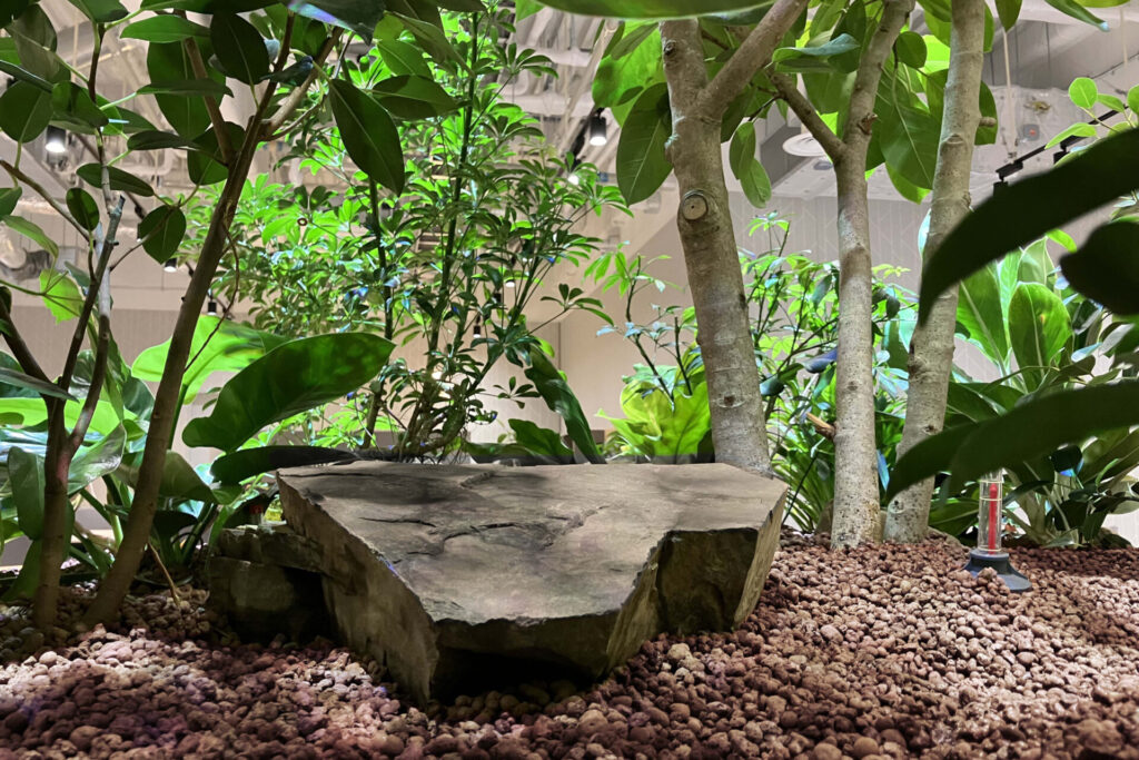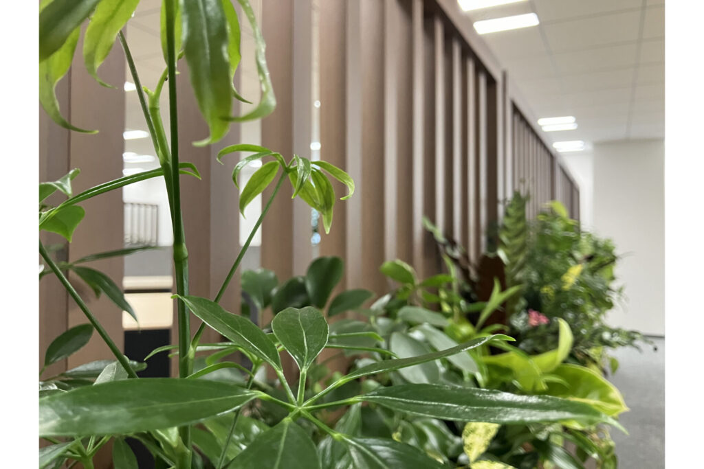 ストレスホルモンであるコルチゾールの低減を目指し、最適な緑量バランスと自然に近い空間づくりを実現しました。